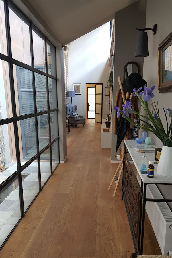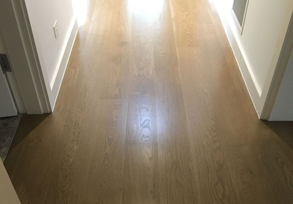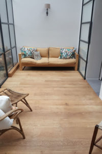 Compared to engineered boards, solid French or European oak is more durable (quite often it can be salvaged after a water damage) and it gives you access to antiquated finishes not available on engineered planks.