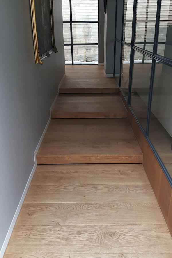 In many cases, be it a new project or a renovation, your timber floor will have to match the finished level of another floor, such as a tiled floor or carpet. this may require the boards to be of a specific thickness. Solid boards nailed on a plywood underlay may help reach the necessary height needed to match a thick stone floor. Our solid boards come in 15mm, 18mm and 20mm thickness, and up to 24mm for stair treads.